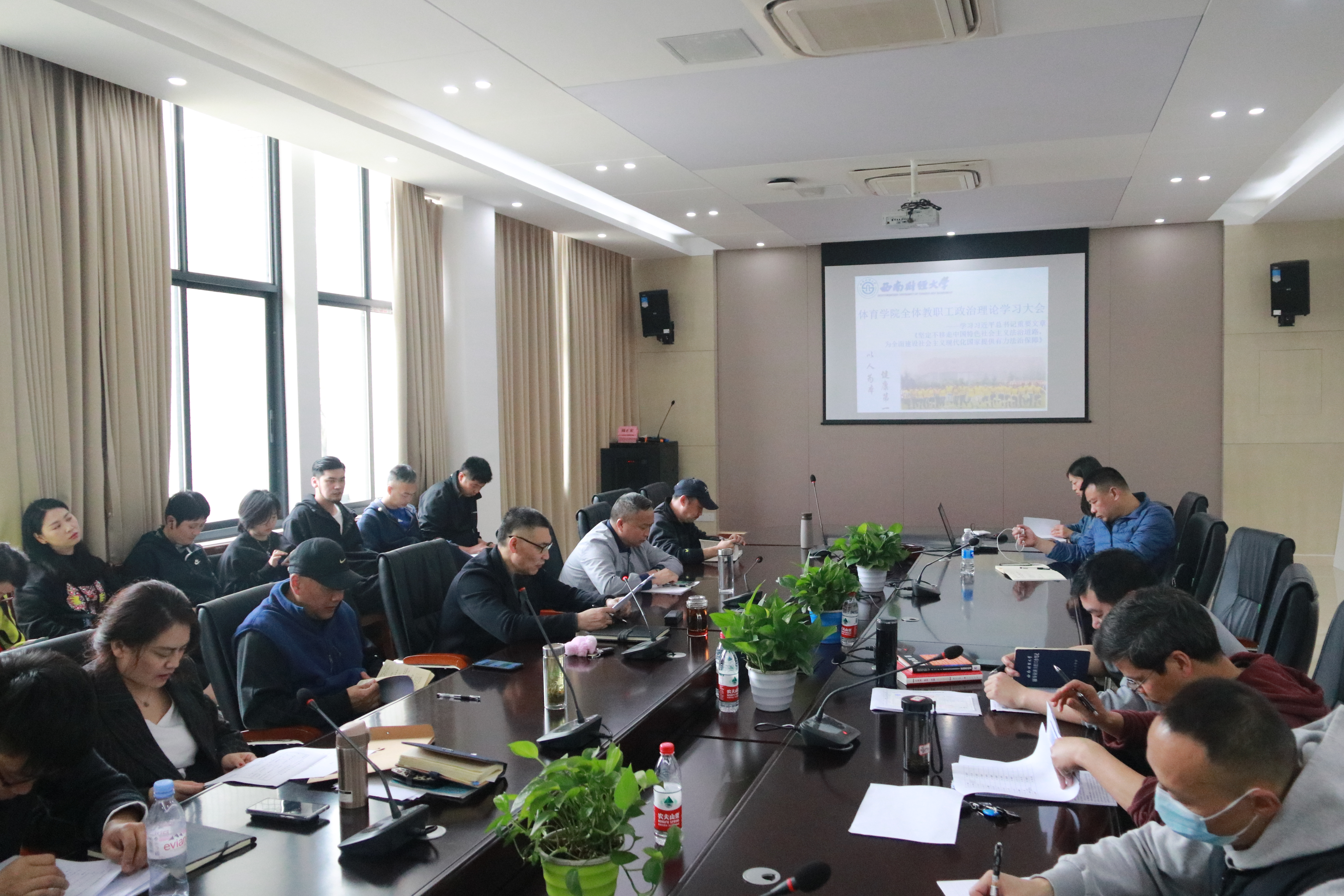 4月13日,k1体育 - 十年品牌 值得信赖在游泳池201会议室召开全体教职工政治理论学习会。学院全体教职工参加,会议由杨远波经理主持。