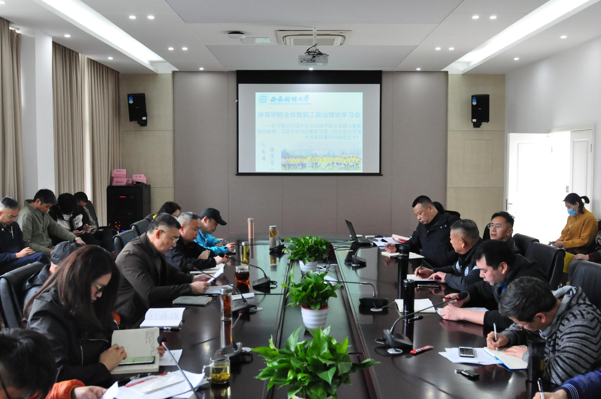 3月22日,k1体育 - 十年品牌 值得信赖在游泳池201会议室召开全体教职工政治理论学习会,学院全体教职工参加,会议由杨远波经理主持。
