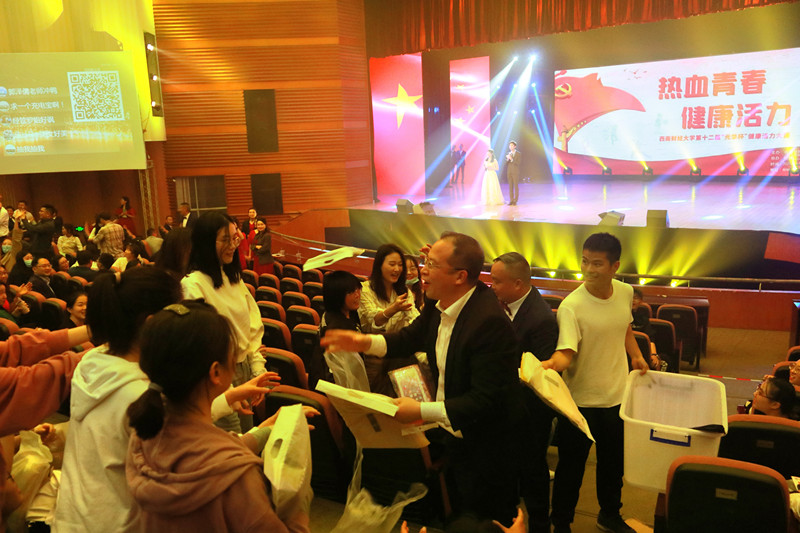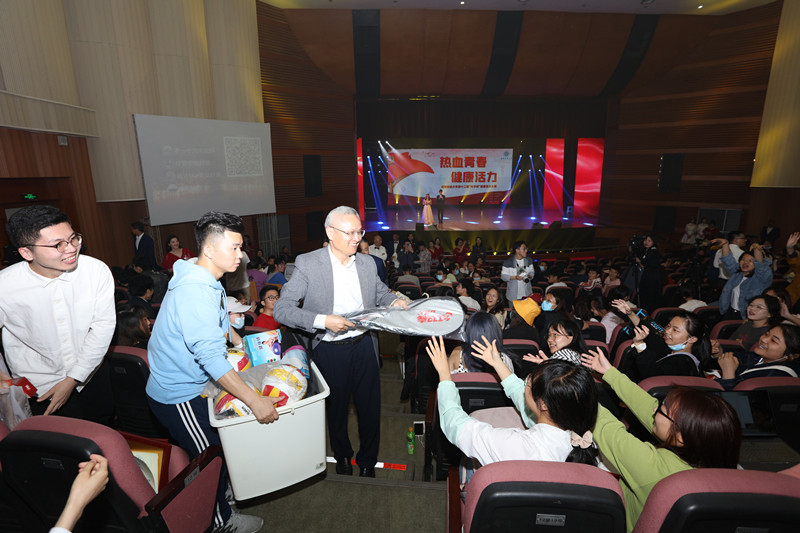 晚会为大家呈现了一台健康活力的视听盛宴,学校领导、职能部门及学院(中心)负责人为获奖单位和个人颁奖,校领导还走向观众席与师生互动,送出了大量健身器材,鼓励正当青春的同学们积极参加体育锻炼,在运动中燃烧激情、在阳光下绽放青春。