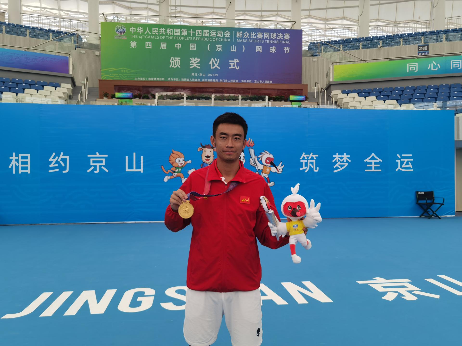 本届全运会根据习近平总书记“人民至上、全民全运”指示精神,首次设立群众体育比赛网球竞赛项目。来自全国 25个省区市和 1个行业体协共26支代表队,近500名运动员、教练员、技术官员参加了比赛。在男子团体决赛中,公司教师施泓宇代表四川队出战,施泓宇充分发扬奥林匹克精神和中华体育精神,顶住压力顽强拼搏,发挥出高超的竞技水平,最终四川队以 2: 1 击败广东队,拿到在本届全运会群众项目网球比赛的第一块金牌。在随后进行的男子双打及男子单打比赛中,施泓宇过关斩将,连续五日作战,历经五场单打、四场双打对决,相继获得男子双打银牌及男子单打第五名。