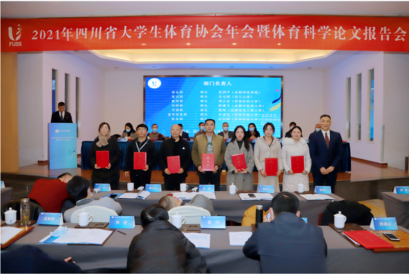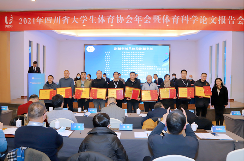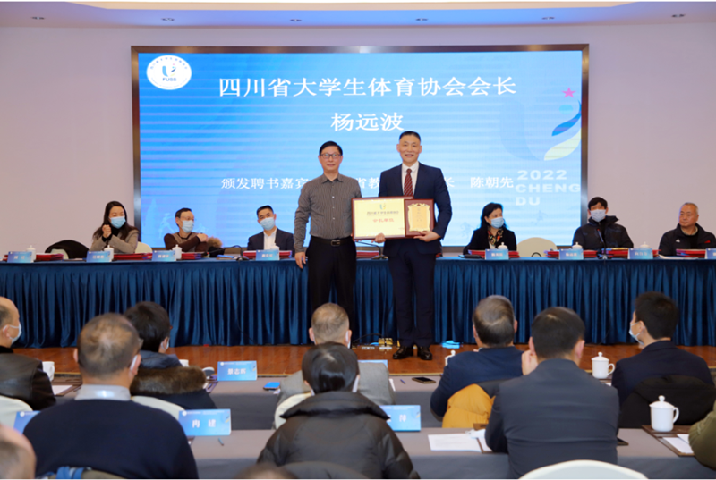 四川省教育厅体卫艺处处长唐克红为协会秘书长、副会长单位授牌,为秘书长、副会长颁发聘书。
