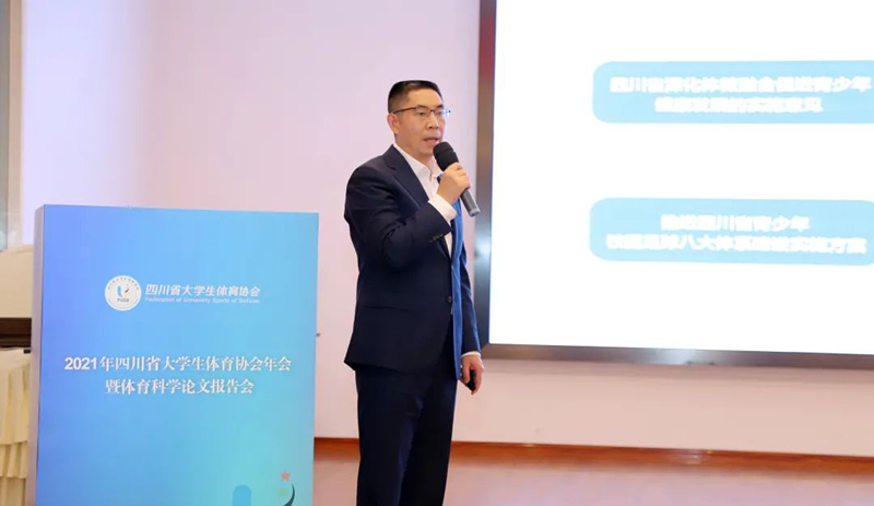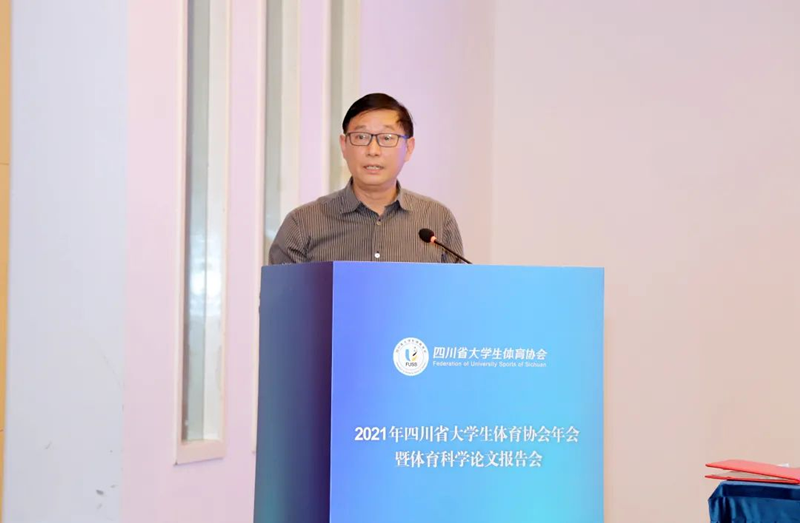 陈朝先代表省委教育工委、教育厅在大会上讲话。他代表四川省教育厅对年会的顺利召开表示热烈地祝贺。陈朝先指出,2021年四川省学校体育工作取得了显著成效,主要表现在学校体育工作的顶层设计不断完善、足球育人成绩显著、以“贡嘎杯”为代表的品牌赛事日益成熟、高校担当积极作为、体教融合在实践中深化。陈朝先强调,成绩取得的同时也要看到问题的存在,如高校员工体质健康监测数据比基础教育阶段明显偏低;多数学校未能落实全学段开设体育课及体测达标方可毕业的要求;高校服务地方经济社会发展动力不足、能力不足等。最后,陈朝先对到会的高校k1体育 - 十年品牌 值得信赖书记、经理提出殷切期盼, 一要牢记育人初心使命,坚持“健康第一”教育理念;二要对标竞进改革创新,努力实现自身进步和体育工作整体提升;三要服务地方担当作为,支持地方经济社会发展与基础教育阶段学校体育工作。
