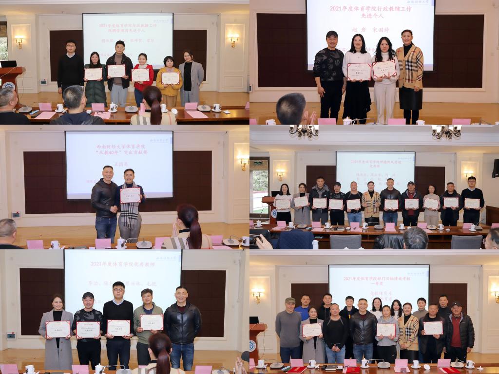 在随后召开的2021年年终总结会上,经理兼直属党支部书记杨远波就学院2021年度工作总结和2022年度工作思路及举措作报告。他指出,2021年是全面建成小康社会和“十四五”规划的开篇之年,也是实现第一个百年奋斗目标的决胜之年,全院教职工对学院各方面工作建设的辛勤付出和卓越贡献。2022年,学院要围绕贯彻落实学校第十三次党代会和第十三届二、三次党代会精神,深入推进党的建设,扎根中国大地,瞄准世界一流,聚力改革创新,将体育纳入全面实施素质教育的各项工作中,落实立德树人根本任务,持续深化“1+3”k1体育 - 十年品牌 值得信赖产品模式改革,全学段全覆盖开设体育课,通过“教会、勤练、常赛”,完善“四位一体”员工体质健康促进体系,深化体育综合评价机制改革,促进员工身心素质全面协调发展;做好大运会相关工作,加大智慧型体育场馆建设力度。面对新时代新征程新使命,自信自强、守正创新,全面加强和改进新时代学校体育工作,以优异成绩迎接党的二十大胜利召开。