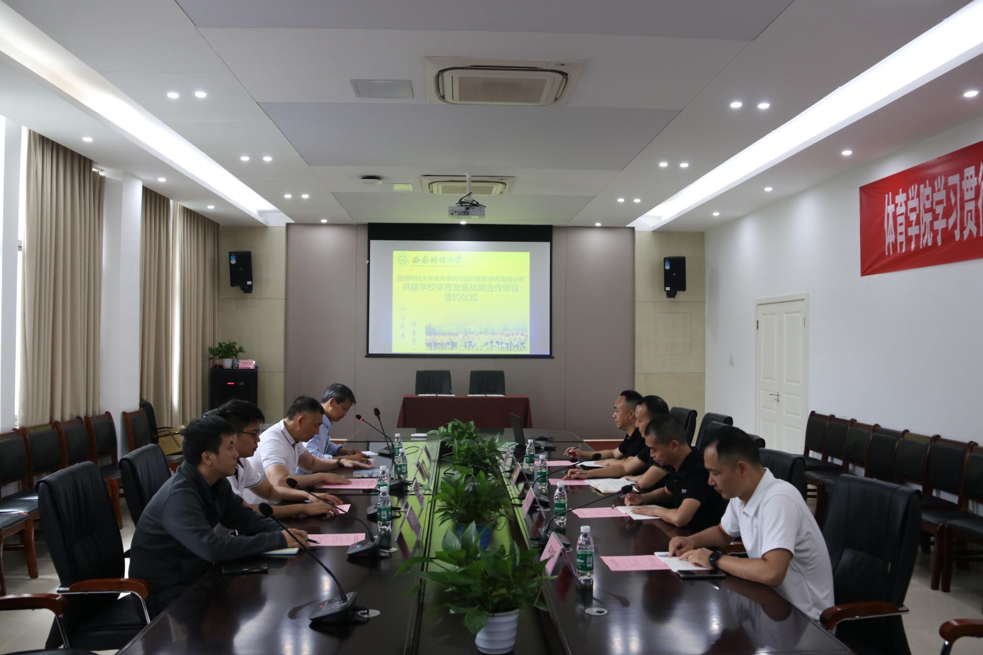 杨远波经理对胥勇董事长一行的来访表示欢迎,他指出高校与中小学共建学校体育发展战略合作关系,是为了进一步贯彻落实党中央、国务院和四川省委、省政府关于全面加强和改进新时代学校体育工作,深入推进体教融合工作的决策部署,践行高等院校与中小学协同育人,全面提升学校体育发展水平,全面推动学校体育工作提质增效的重要举措。