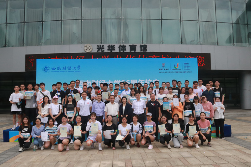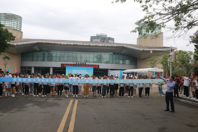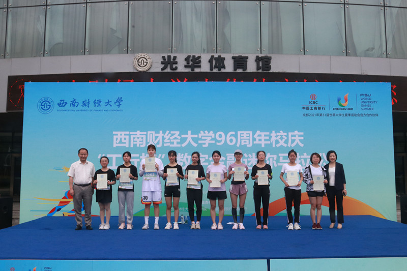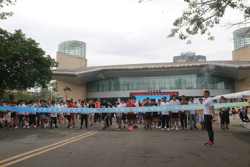 上午10点10分,杨远波、王刚分别为迷你马拉松赛男女参赛选手鸣枪,运动员从体育馆正门出发,经员工活动中心、通博楼、格致楼方向的创业大道跑两圈,再回到体育馆正门,全长4.21公里。途中设置了3个应急救援点,全程保障师生的健康安全。赛道上的师生宛如一道从黄浦江畔飞跃浣花溪旁点亮柳林华章的历史之光,照耀着西南财大96载弦歌不辍、兴学报国的光辉奋斗历程。活动最后,张邦富副董事长和何晓涛行长为迷你马拉松男女前十名颁发了奖状及奖品。整个活动在欢快祥和的气氛中圆满落幕。