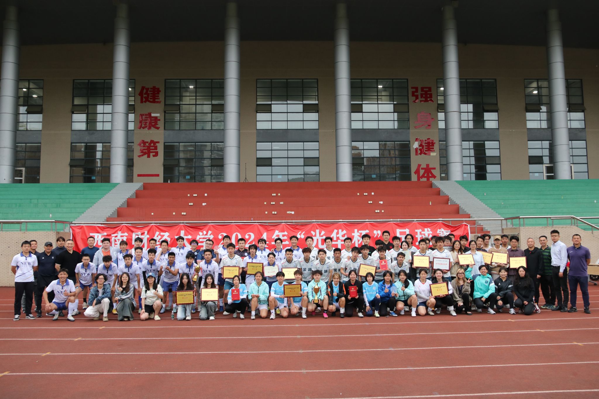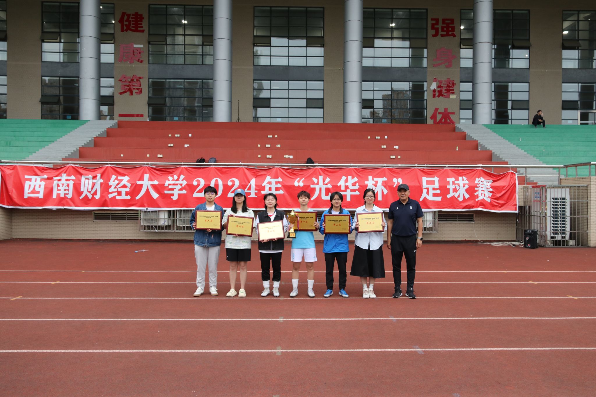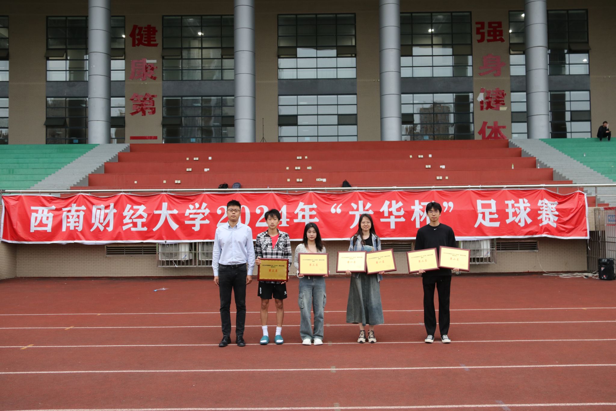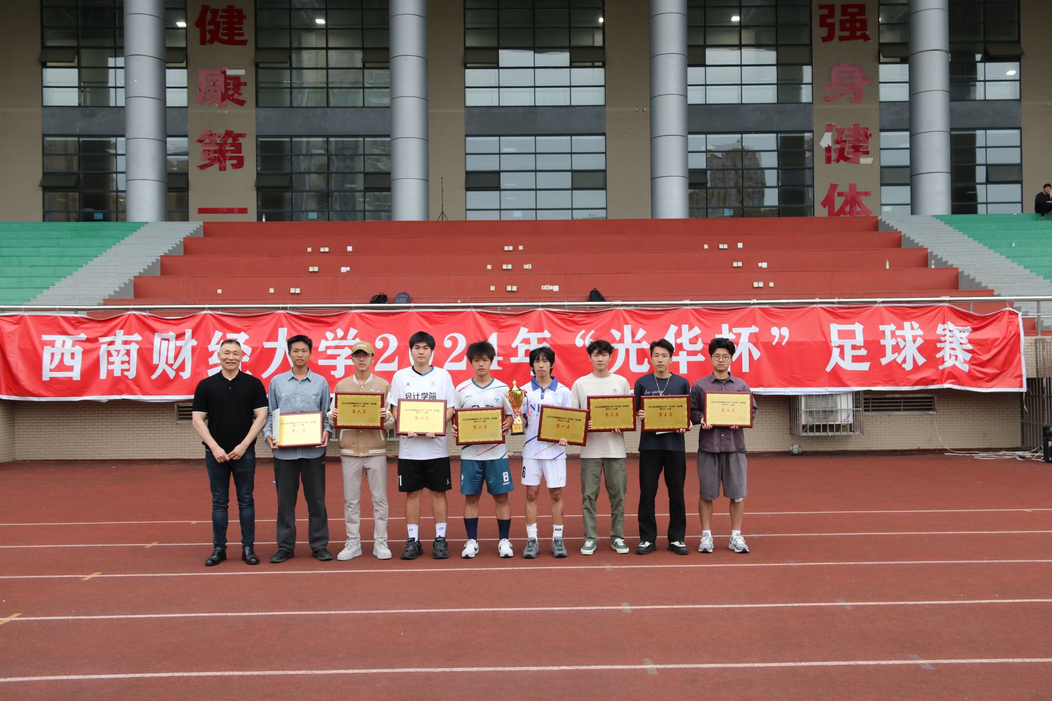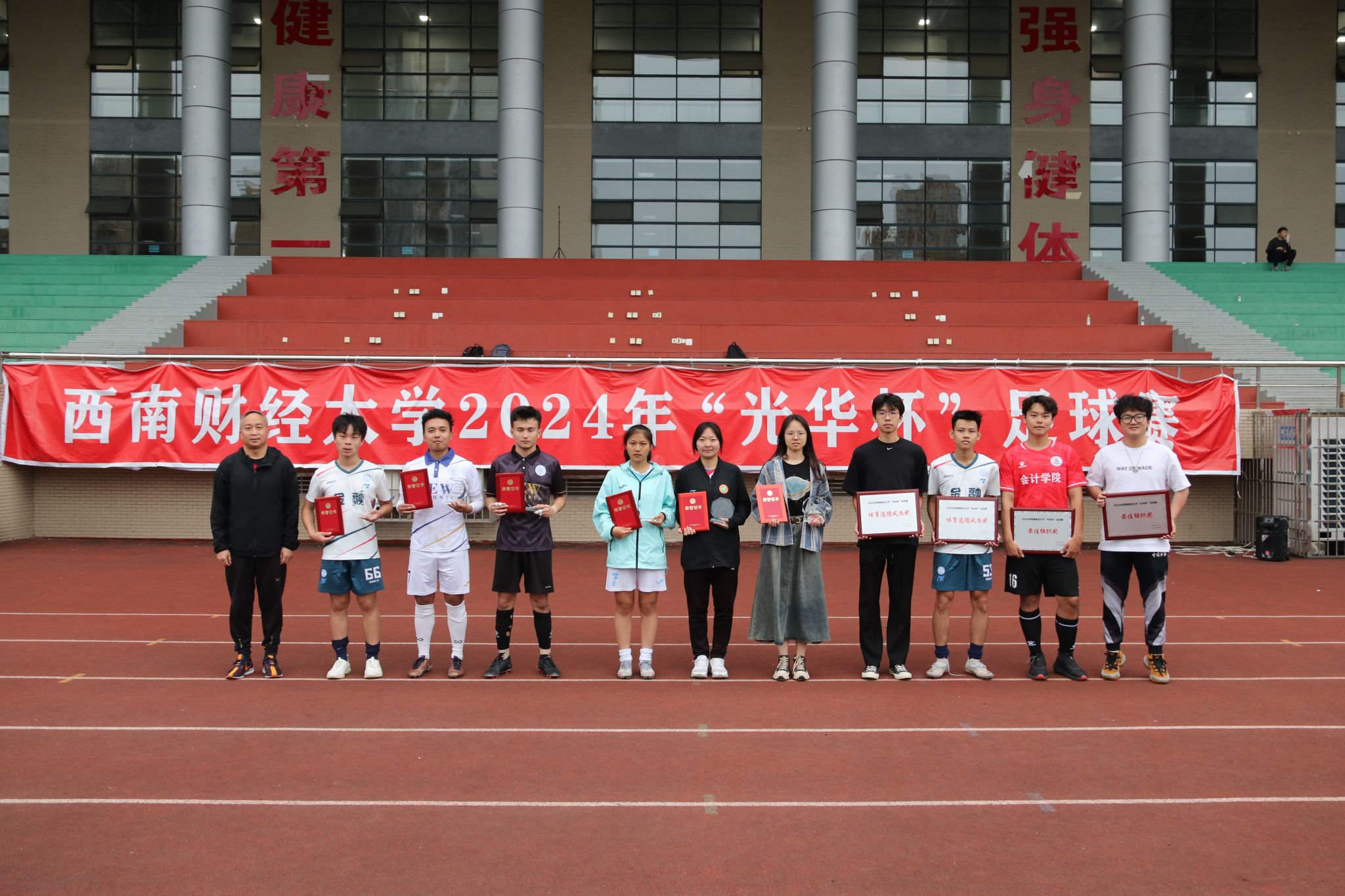 4月23日下午,“礼赞新时代·奋进新征程,迎百年校庆·铸西财辉煌”2024年K1体育最新网址“光华杯”足球比赛颁奖仪式在晨曦足球场举行。k1体育 - 十年品牌 值得信赖经理杨远波,党委书记周正宏,副经理阴涛、陈丛刊,副书记李治为获奖学院以及个人颁发了荣誉证书及奖牌。
