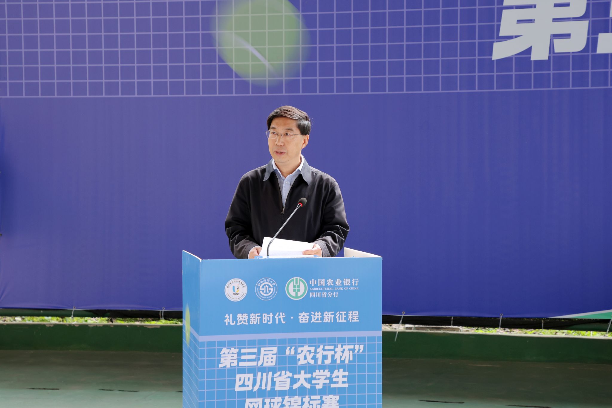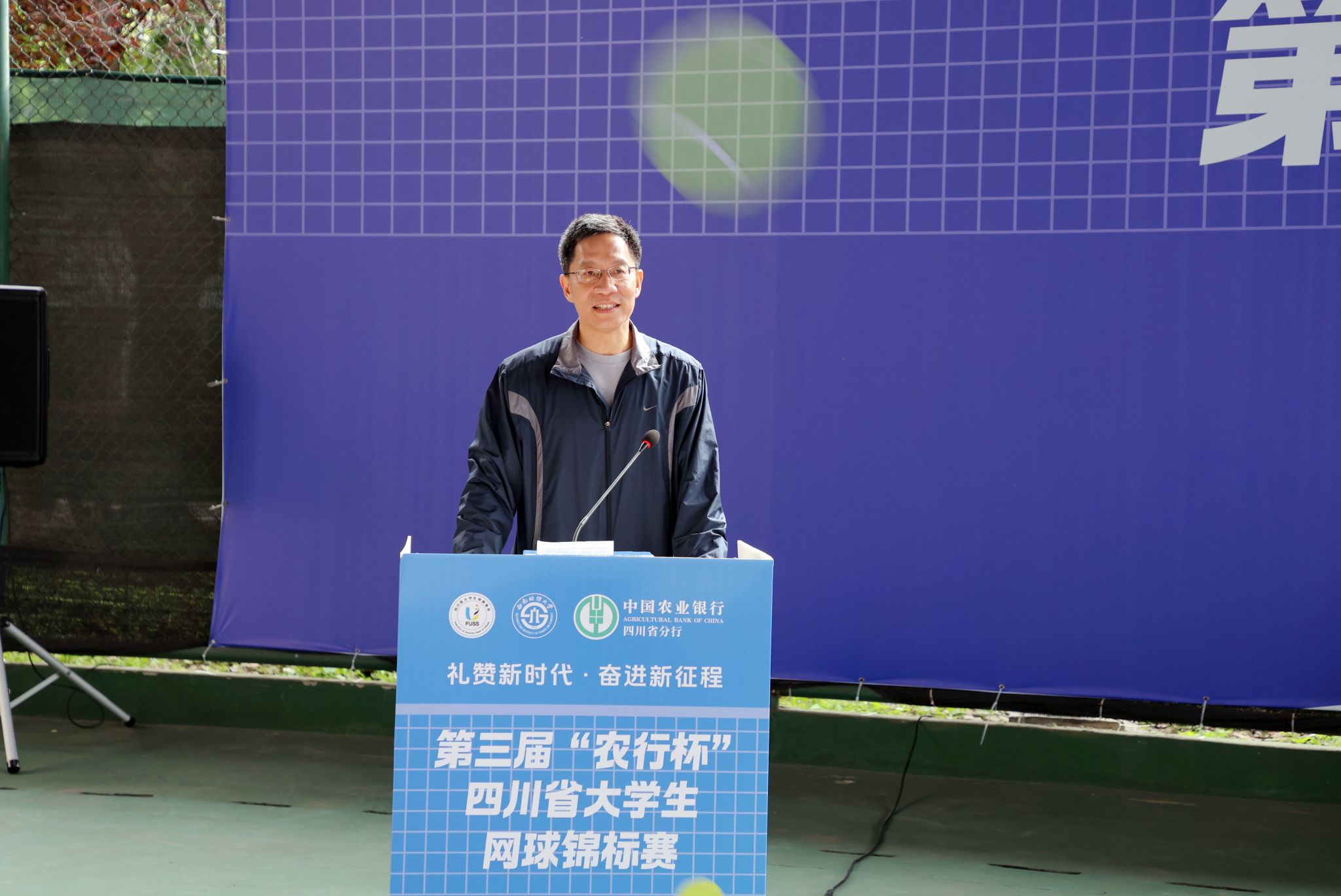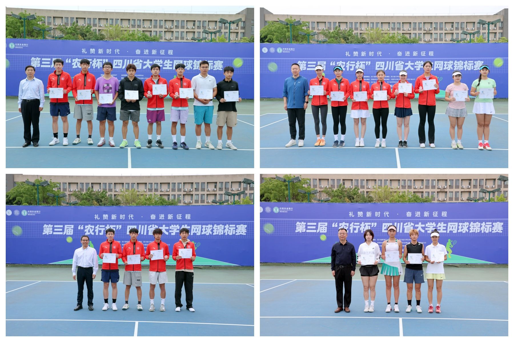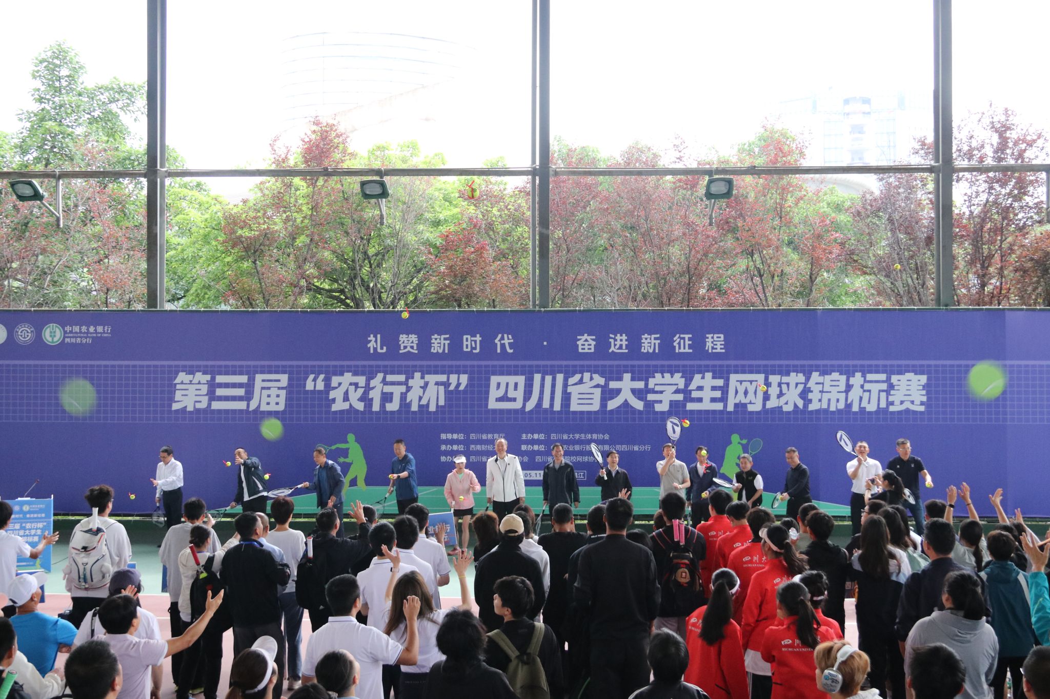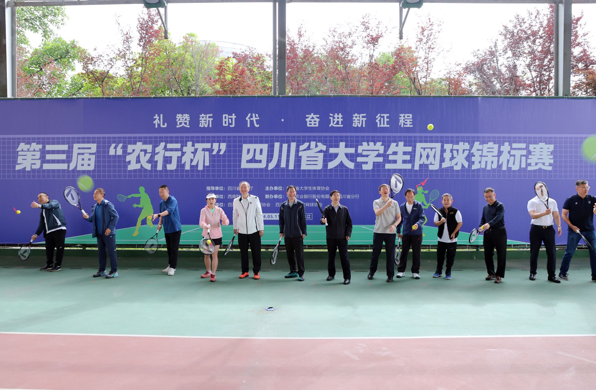 5月11-12日,由四川省教育厅指导、四川省老员工体育协会主办、K1体育最新网址承办、中国农业银行四川省分行联办的第三届“农行杯”四川省老员工网球锦标赛在学校柳林校区举行,全省56支代表队和800余名运动员、教练员、裁判员参加比赛。四川省政协党组副书记、副主席钟勉出席开幕式并宣布比赛开幕,中国农业银行股份有限公司四川省分行党委书记、行长孙景伟和公司党委书记赵建军分别在开幕式致辞,党委常委、副董事长李志生主持开幕式。