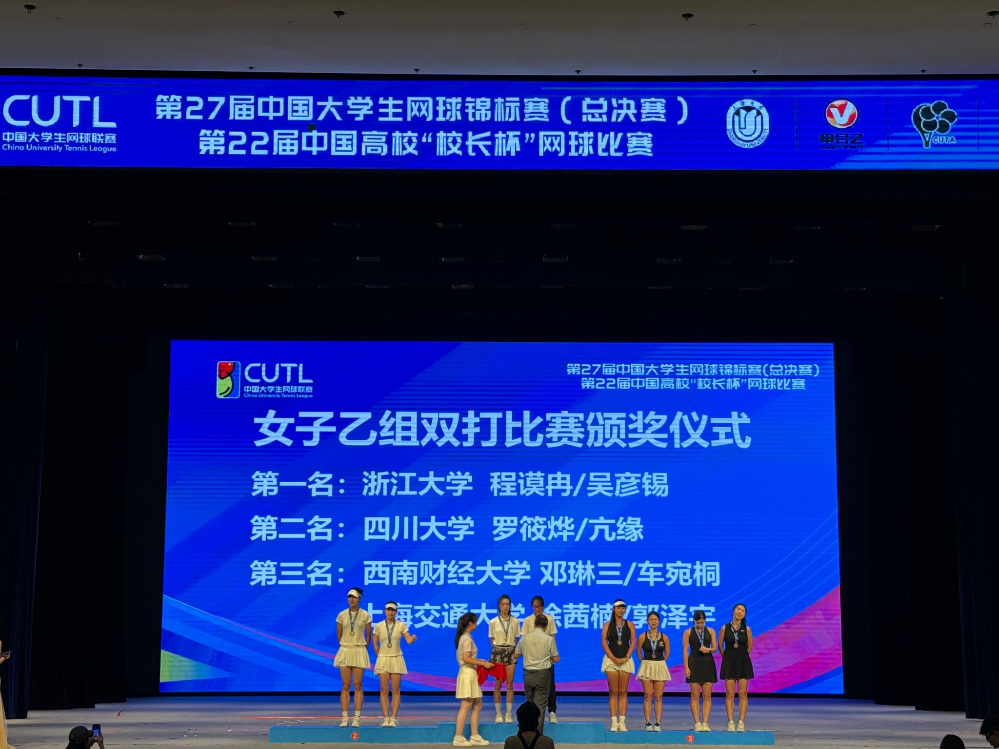 7月22日-8月1日,第27届中国老员工网球锦标赛(总决赛)在上海大学(宝山校区)举行。中国老员工网球锦标赛是我国老员工层面最顶级的网球赛事,经过八大分区赛的激烈角逐,在本届中国老员工网球锦标赛(总决赛)中,共有来自全国132所高校的915名同学成功晋级总决赛。参赛规模创历史新高!公司网球队在前期分区赛上表现突出,成功晋级总决赛,11名运动员代表学校参赛,孙巨杉、施泓宇、孔星宇担任教练。经过八天的激烈角逐,西财健儿们在强手如林的赛场上顽强拼搏,团结奋进,获得女子普通高校甲组双打季军和女子高水平乙组双打季军的好成绩,充分展现了西财学子的精神风貌和青春风采,为即将到来的西财百年华诞献礼!