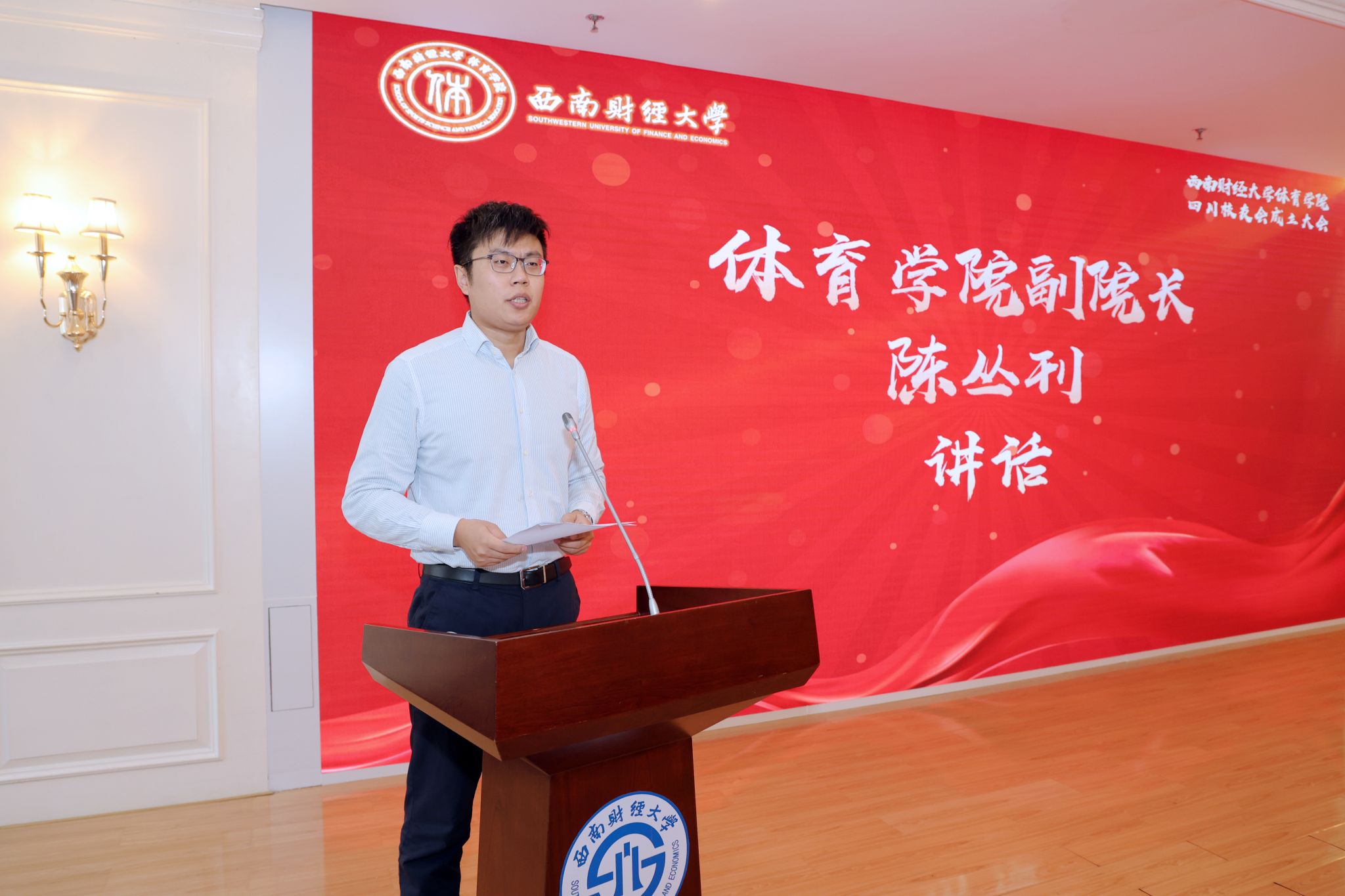 学院主持工作的副经理陈丛刊,代表学院向新成立的k1体育 - 十年品牌 值得信赖四川员工会表示衷心祝贺,向与会员工表示热烈欢迎。他深情回顾了学科发展历程,详细阐述了学院自成立至今的建设情况和未来发展愿景,以及学院四川员工会成立的重要意义。他强调,学院取得的成绩离不开全体师生员工的努力奋斗,更离不开广大员工的大力支持。员工是学校最宝贵的财富,与母校是荣辱与共的命运共同体,学院要着力构建员工与母校沟通联络的桥梁,搭建信息交流、资源共享的平台,与广大员工一道共叙母校深情、共谋学院发展,为加快建设教育强国贡献西财体育力量。
