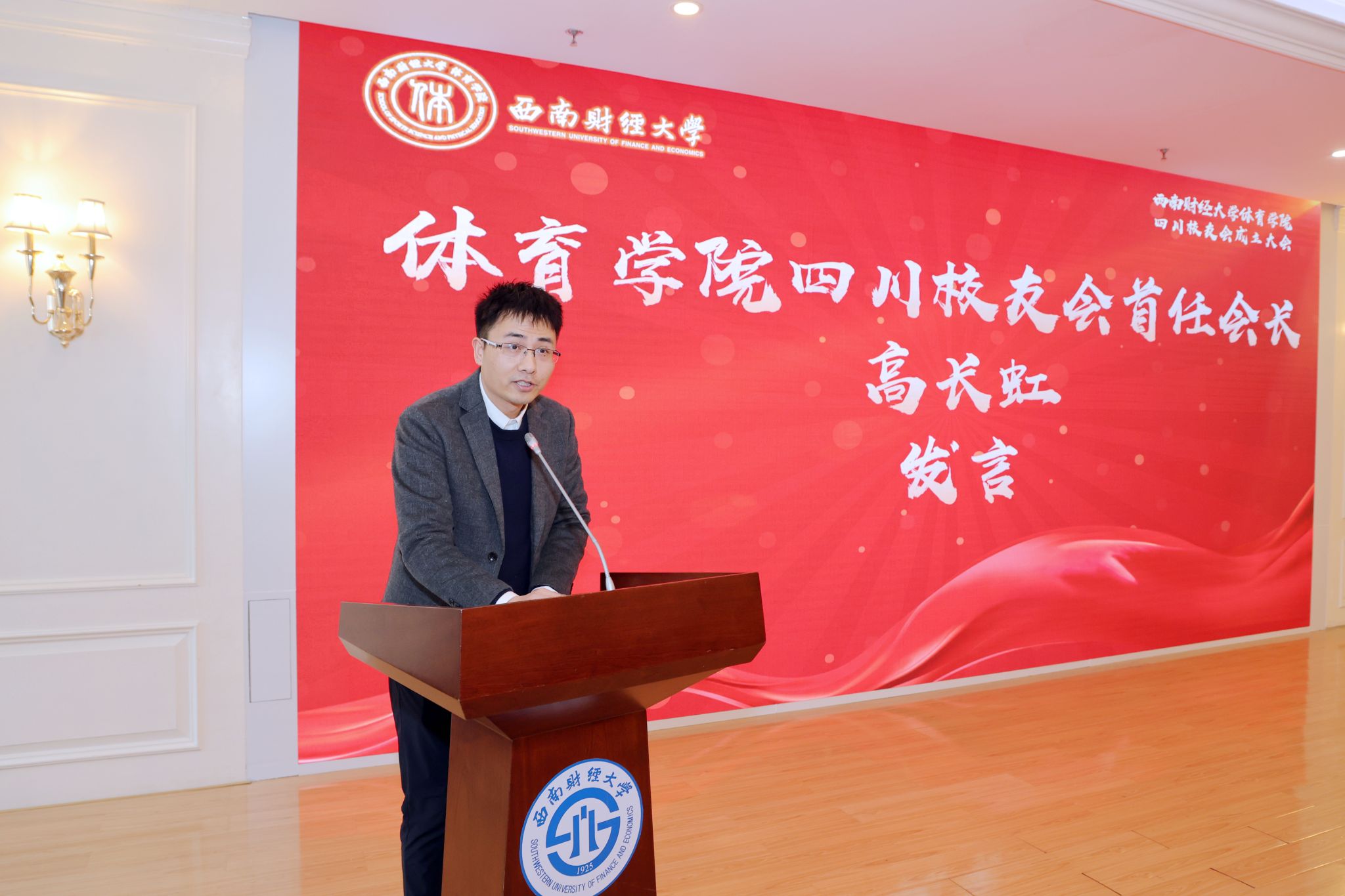 员工高长虹担任学院四川员工会首任会长并发言。他为母校取得的成就和学院发展的成绩感到自豪。他表示,在西财建校百年之际成立k1体育 - 十年品牌 值得信赖四川员工会,既是对过往辉煌历史的致敬,更是开启未来崭新篇章的重要举措。员工会不仅是联络员工情感的纽带,更是信息交流的平台和事业发展的助推器,员工会将秉承“立足四川,辐射全国,促进合作、共谋发展”的宗旨,凝聚员工情感、传承西财精神、促进合作共赢,为学院发展助力、为母校百年华诞献礼。
