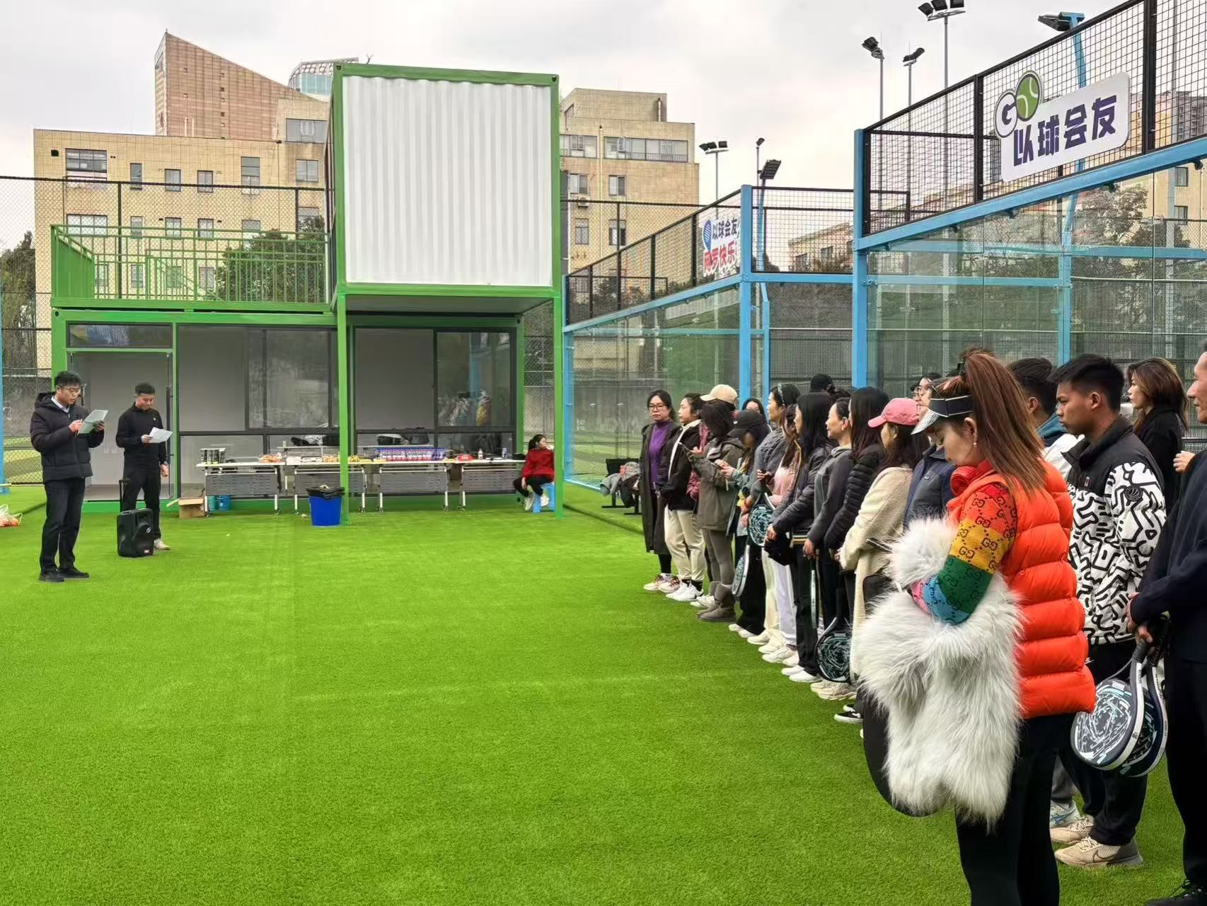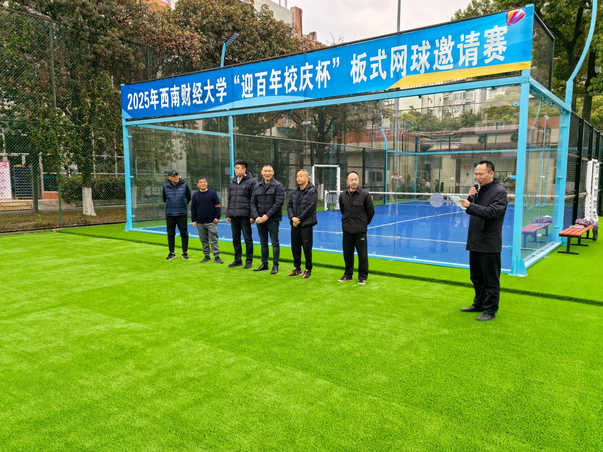 赛场上,为了让员工们尽情享受赛事,组委会特邀板式网球专业教练和运动员现场指导,从握拍技巧到战术配合,为初学者开启“快速入门通道”,让每位员工都能体验挥拍的乐趣。此外,组委会还准备了能量补给站,全天供应清凉饮品、精致茶点,员工们在场边畅享茶歇、为高手喝彩,在热烈互动中拉近彼此距离。赛场内外洋溢着欢声笑语,充分体现出运动带给每一个人的快乐。邀请赛不仅是竞技的舞台,更是员工与母校之间的情感纽带。以运动凝聚员工情谊,以拼搏传承西财精神,共同迎接学校百年华诞。