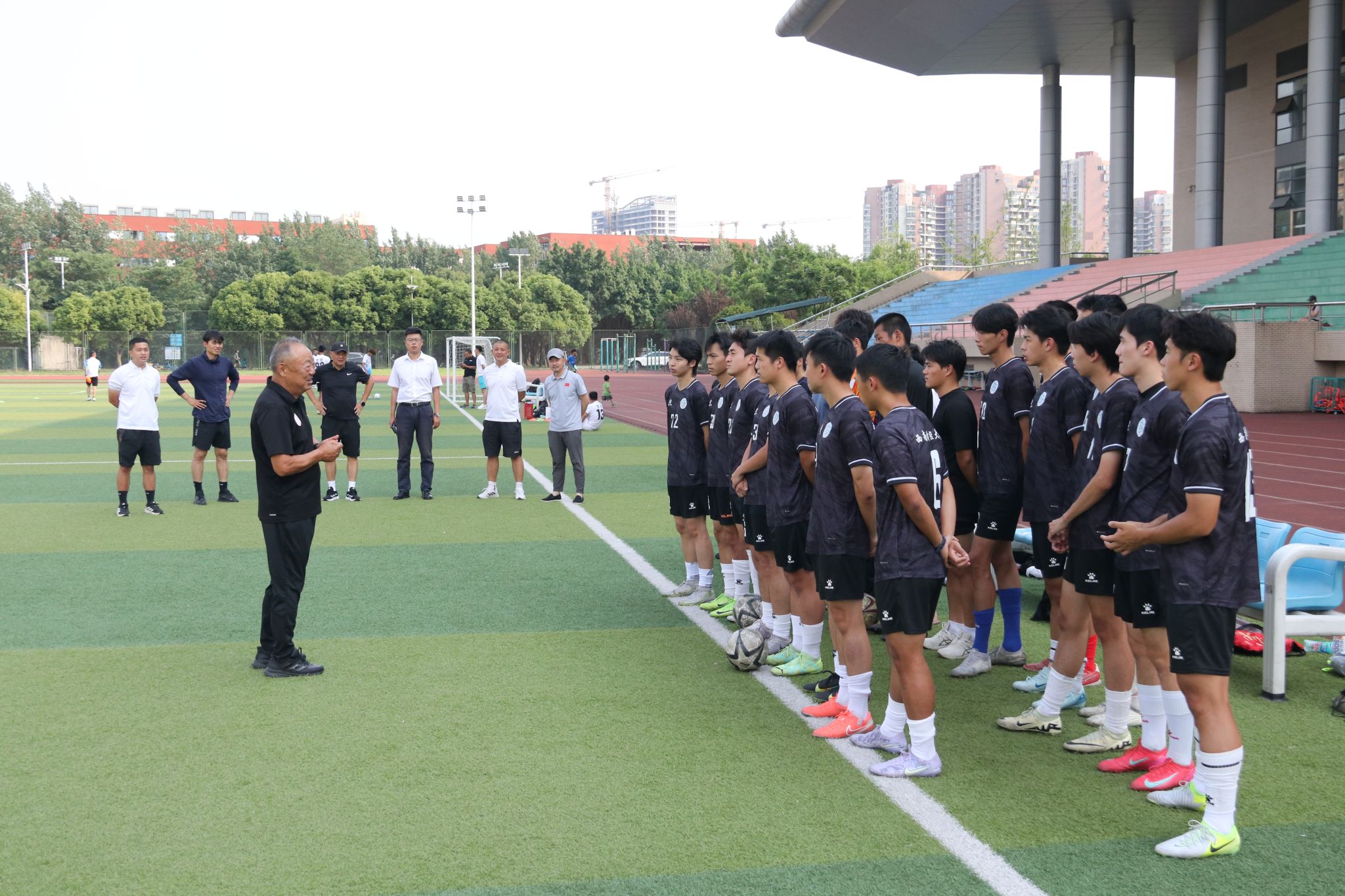 作为中国足球职业化早期的代表性教练,余东风曾执教四川全兴等多支劲旅,拥有丰富的带队经验。热身赛中,他全程专注观察球员表现,针对攻防转换、定位球战术等关键环节,为球队进行了针对性指导。在余东风的现场点拨下,西南财大球员配合更加默契,攻防节奏把控显著提升。