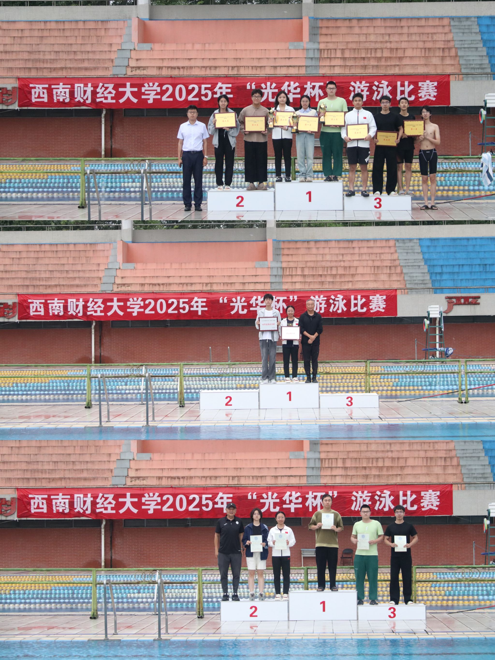 本次比赛设有男子、女子50米蛙泳、50米自由泳、50米蝶泳、50米仰泳等8个项目,吸引了14个学院约80名选手同场竞技。发令枪响,泳池瞬间激起浪花,选手们舒展有力的泳姿,在赛道上你追我赶;岸边观众热情高涨,加油助威声此起彼伏,将现场氛围推向高潮。经过激烈角逐,8个单项冠军各落其主,金融学院中国金融研究院、经济学院、会计学院凭借出色表现,分获团体总分前三名。k1体育 - 十年品牌 值得信赖副经理陈丛刊(主持工作)、公司党委书记周正宏、副经理阴涛及相关部门负责人亲临现场观赛,并为获奖个人与学院颁发荣誉证书及奖牌。