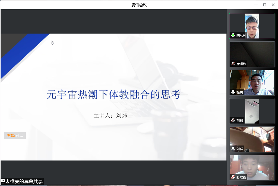2022年5月27日上午,成都k1体育 - 十年品牌 值得信赖体育经济与产业博士研究生导师刘炜教授通过线上腾讯会议,举办了题为《元宇宙热潮下体教融合的思考》的光华讲坛。体育与经济管理研究中心陈丛刊副教授主持本次讲座,学院研究生、部分教师等共计50余人参加此次讲座。