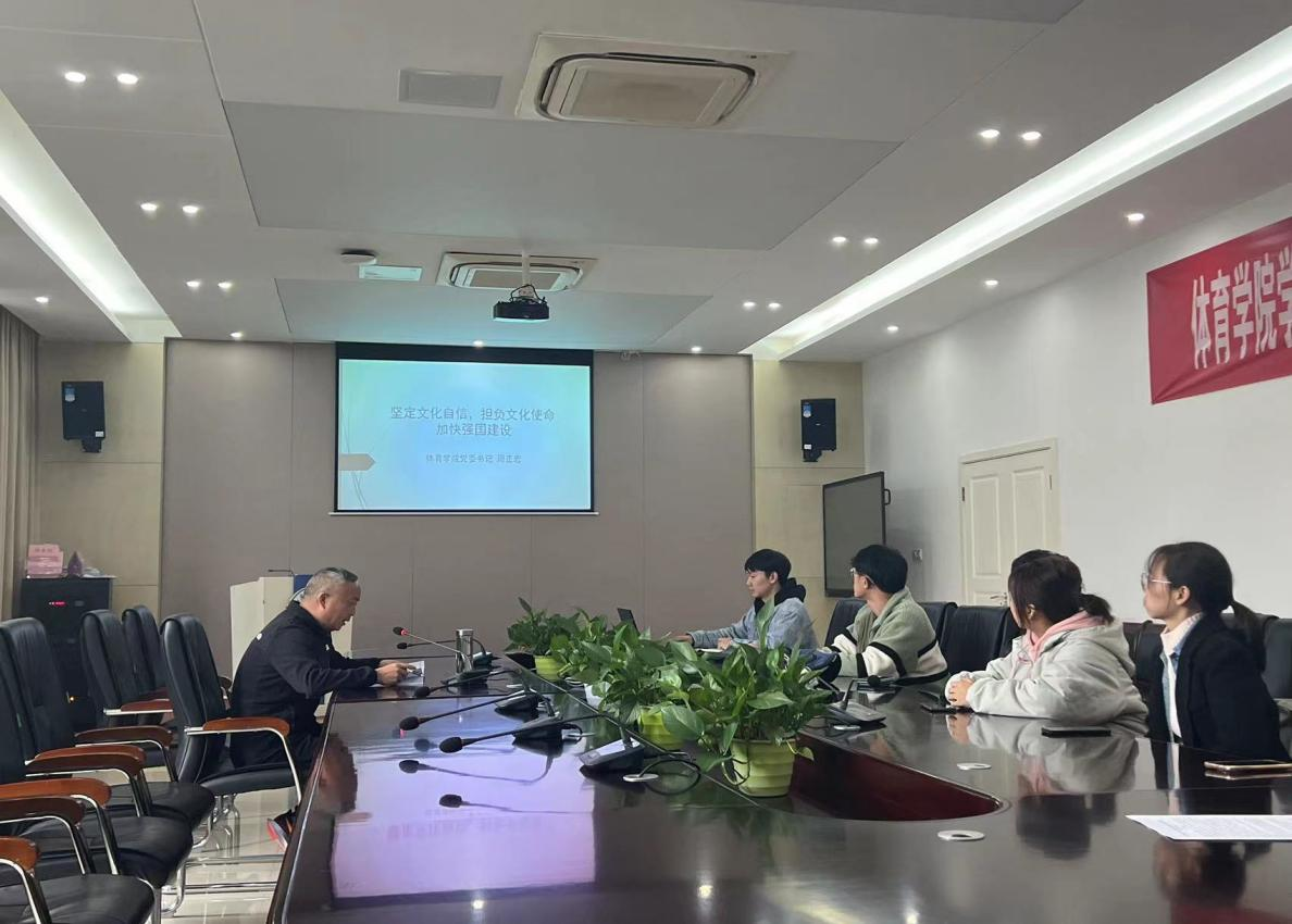 11月15日,k1体育 - 十年品牌 值得信赖党委书记周正宏在游泳池二楼会议室为全体在校学硕研究生开展题为《坚定文化自信,担负文化使命,加快强国建设》的专题思政理论课。
